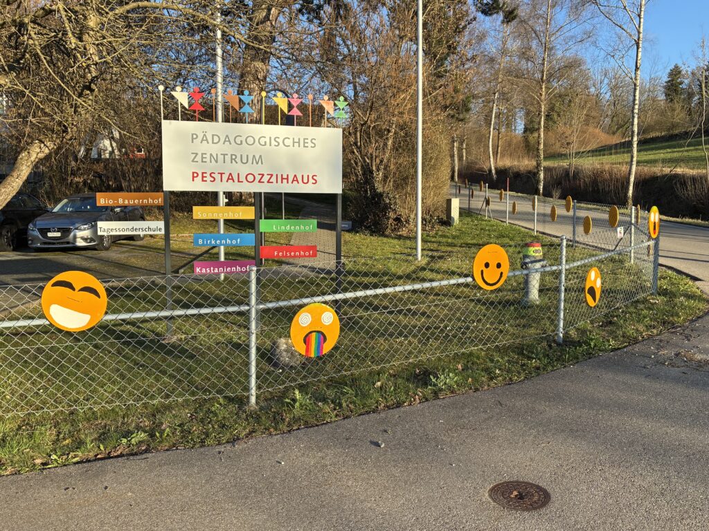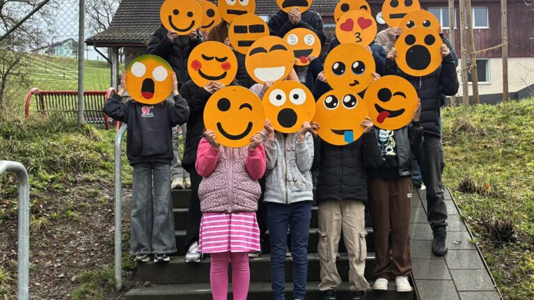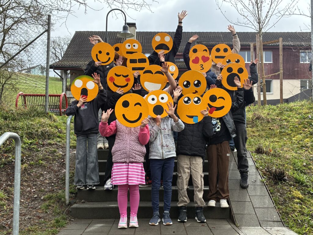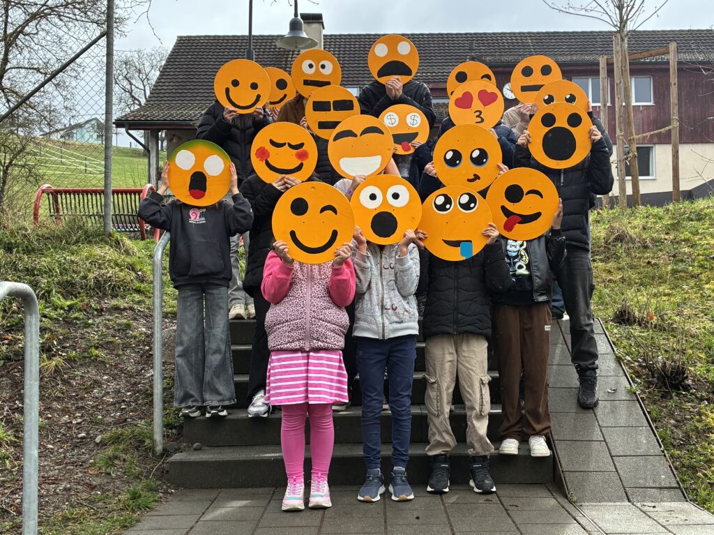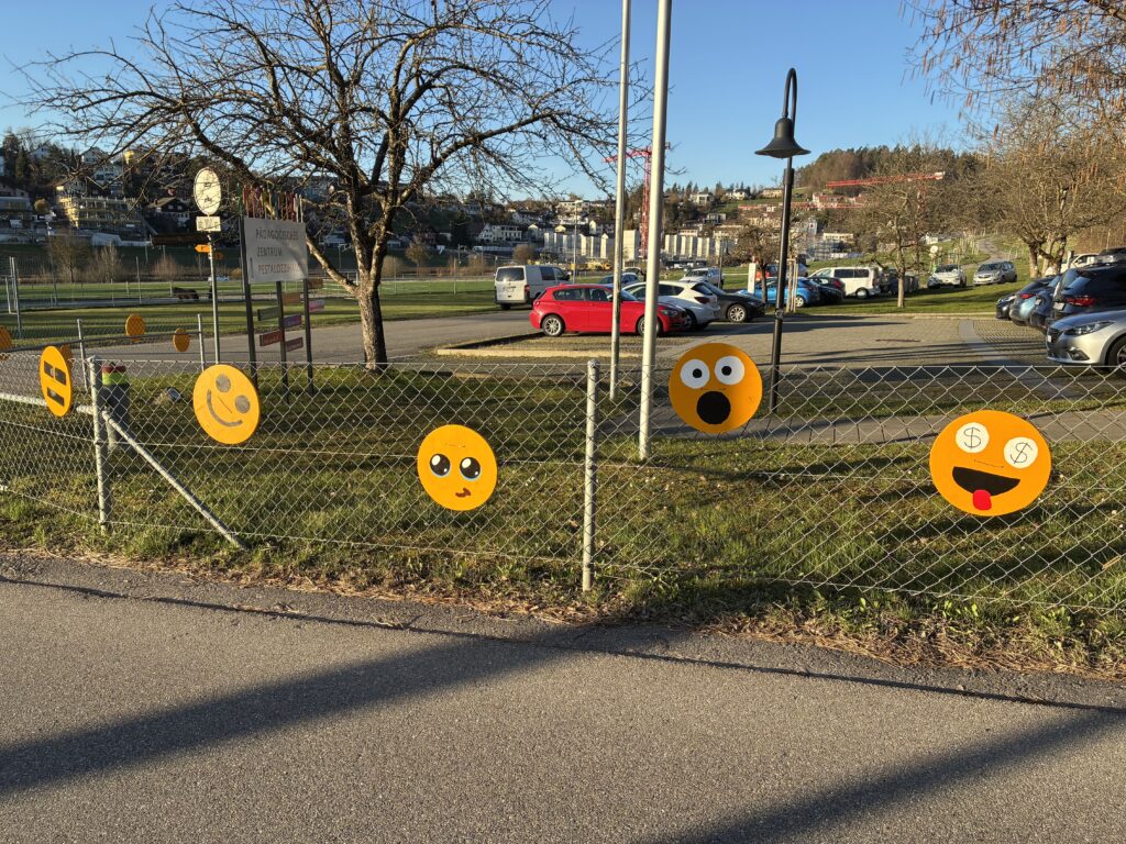 Passend zu unserem Jahresmotto «Together as one” stellen alle Schülerinnen und Schüler im TTG – Textiles und Technisches Gestalten ein Emoji aus Holz her. Es entstehen viele lustige, traurige, wilde, staunende und grimmige Emojis. Diese werden nun zur Dekoration entlang unseres Zauns aufgehängt. Gleichzeitig zeigen unsere farbenfrohen Emojis den Verkehrsteilnehmern, dass hier Kinder und Jugendliche unterwegs sind.