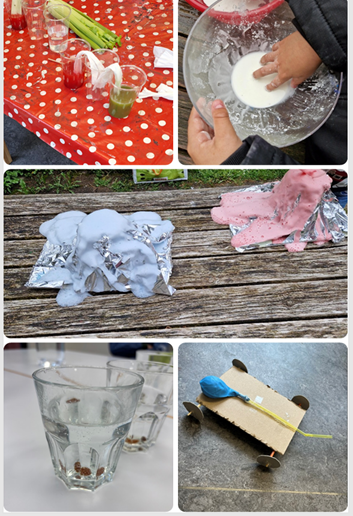 Während den Experimenten Wochen haben sich täglich spannende Möglichkeiten geboten, um unseren Entdeckersinn auszuleben. Sei dies bei einem brodelnden Vulkan, welcher ausgebrochen ist oder beim Farbwasser-Experiment wobei die Kapillarwirkung beobachtet werden konnte. Die Rosinen sind im Mineralwasser durch Kohlensäurebläschen auf und abgesunken, als wären sie am Tanzen.